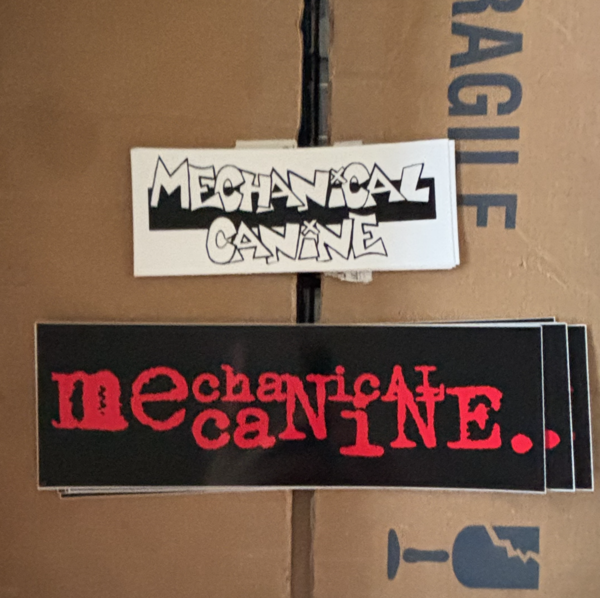 Michael Romance and OPIV sticker rips. One order includes two of each design, plus a Fire Hazard Records sticker (not pictured) and a Mech Canine pin.